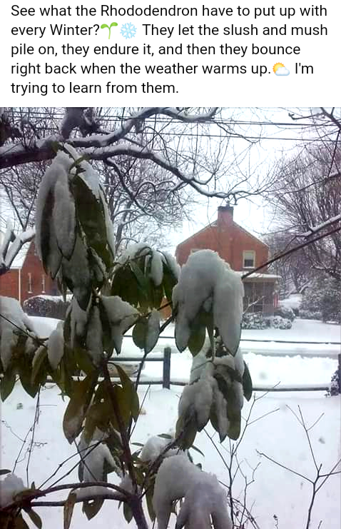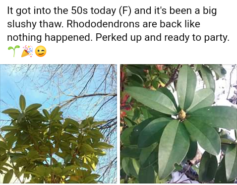 Nevertheless, I chronicled the ups and downs and precipitation changes in three posts on my social media accounts. In the end, there is some humor in it, and something like heroism from some plucky, all-weather plants.