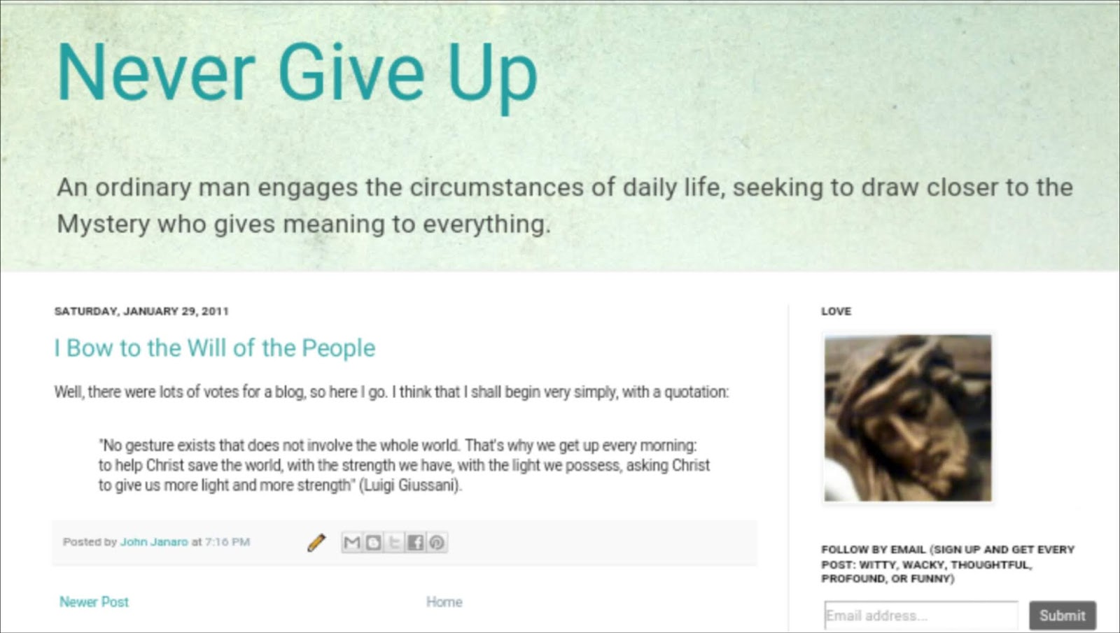 Last month was the eighth anniversary of this blog. The very first post in January of 2011 was a quotation from him that I like to recall, not because it's "his words" but because it helps me remember who Jesus is, and why I exist, and what is really at stake in life - why it's worth it to live every day.