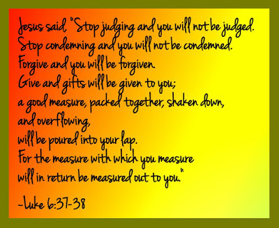 Jesus says "stop judging" and "stop condemning," but at the same time he says, "Give..." which is akin to the exhortation to love, to suffer for the sake of justice, to lose ourselves for his sake so that we might truly find ourselves.