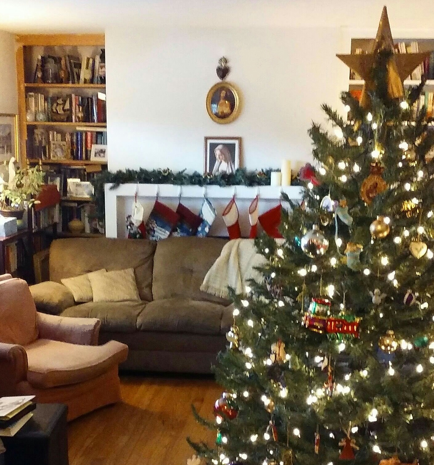 Included here are some of Eileen's old hand-crafted wooden ornaments from her high school days living in Germany, some views of our Nativity Scene, pictures of our unusually tidy and decorated living room, and other curiosities.