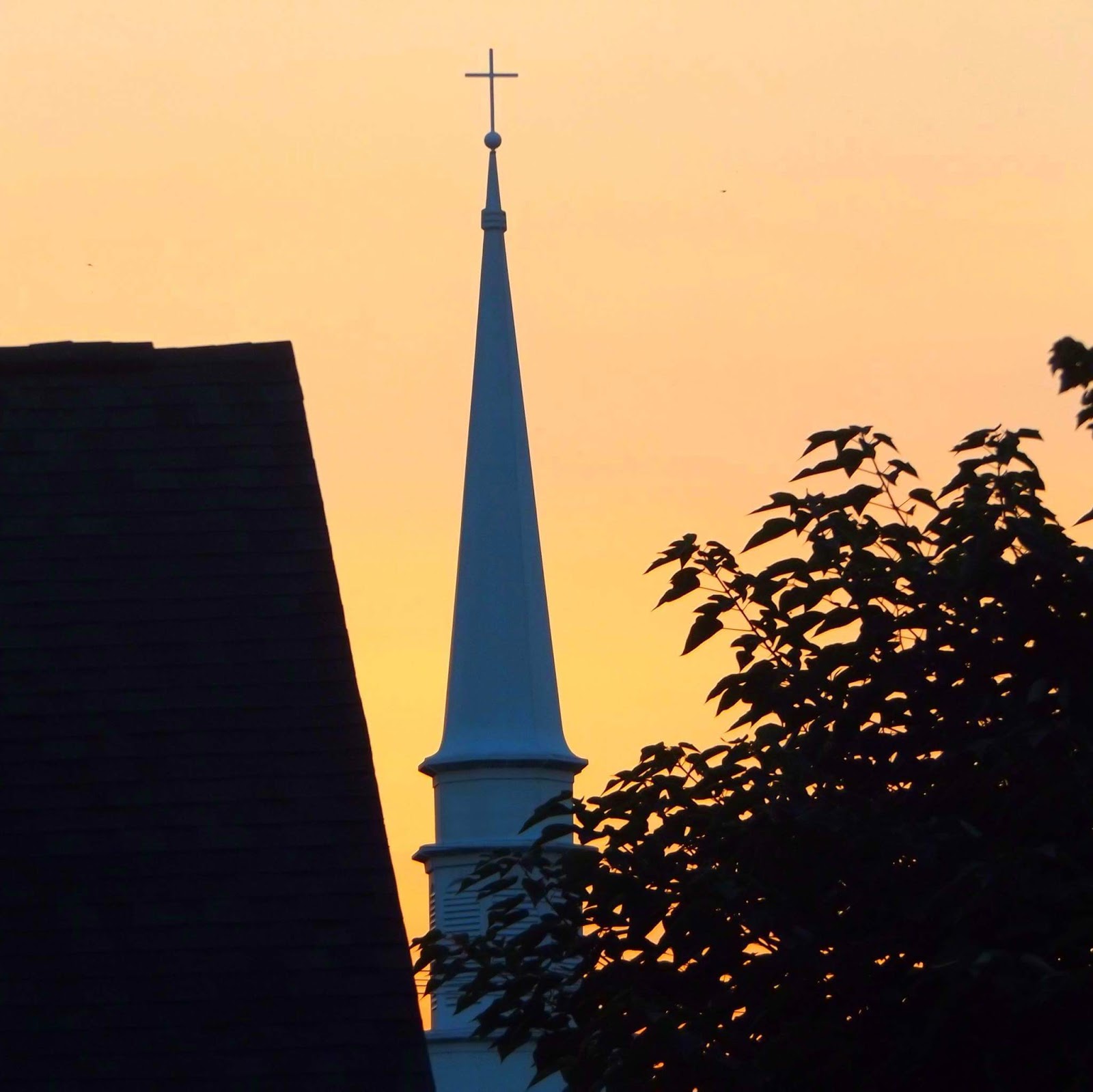 the steeple of the local Baptist church (photo).
