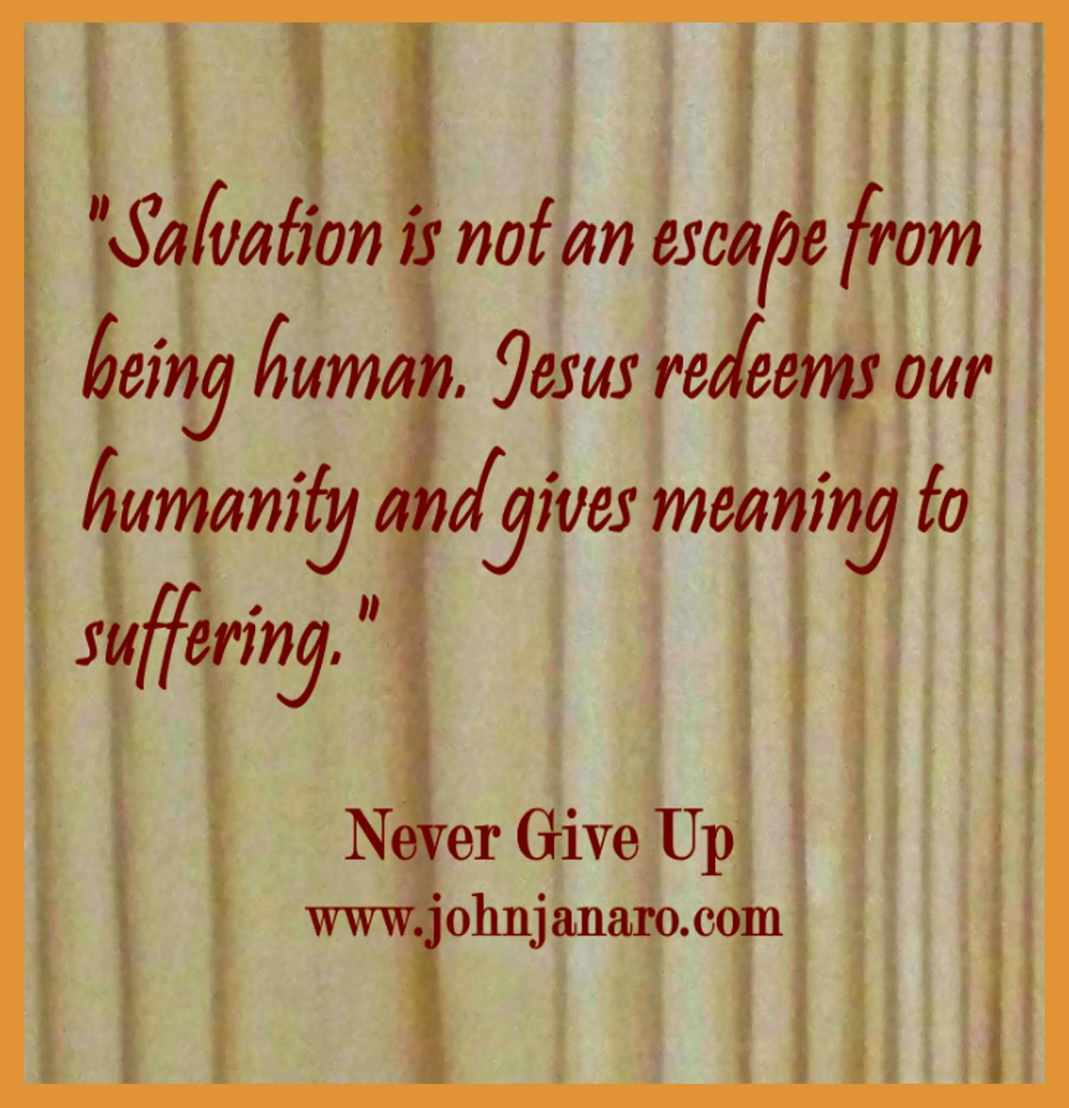 Salvation is not an escape from being human, from suffering and sorrow. It redeems our humanity and gives meaning to suffering that is otherwise incomprehensible, that even seems cruel.