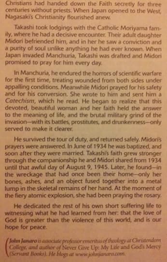 He is held in great esteem in Japan by Christians and non-Christians, and his story deserves to be more widely known. As I continue my literary (and film/video) "tour" of East Asia, you will hear more about him from me. His story is deeply Catholic, sorrowful, mysterious, and marked by the distinctively Japanese cultural character that we need to understand better.