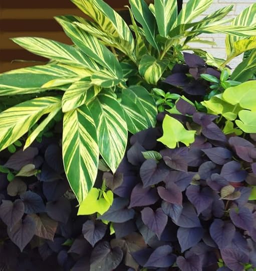 A pic of some potted foliage in the front of a building in "the big city."