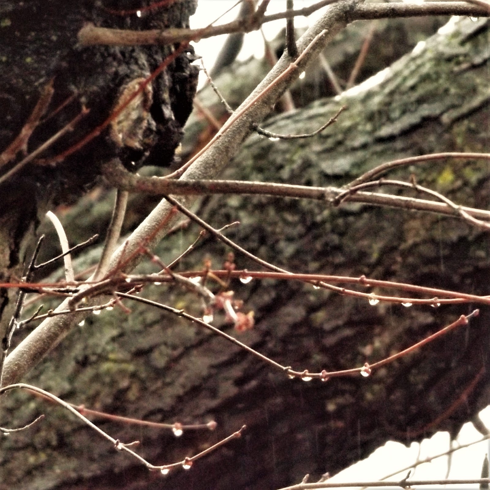 Now this looks like NOVEMBER! (Finally, on the last day of November.) Gray skies and rain on bare branches.
