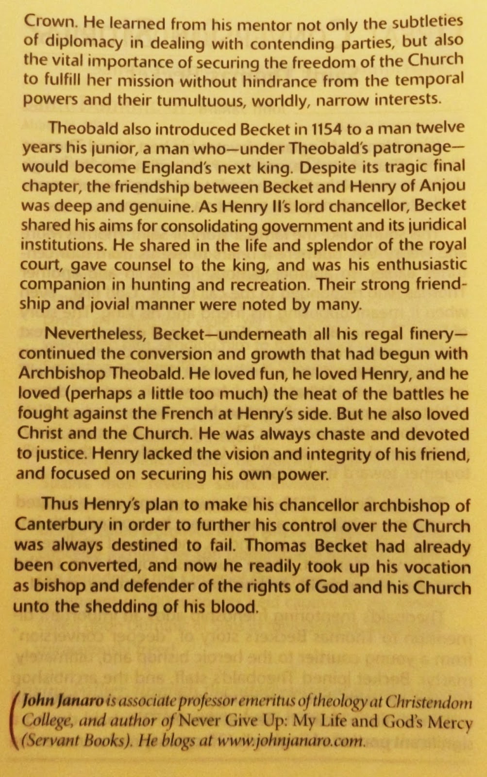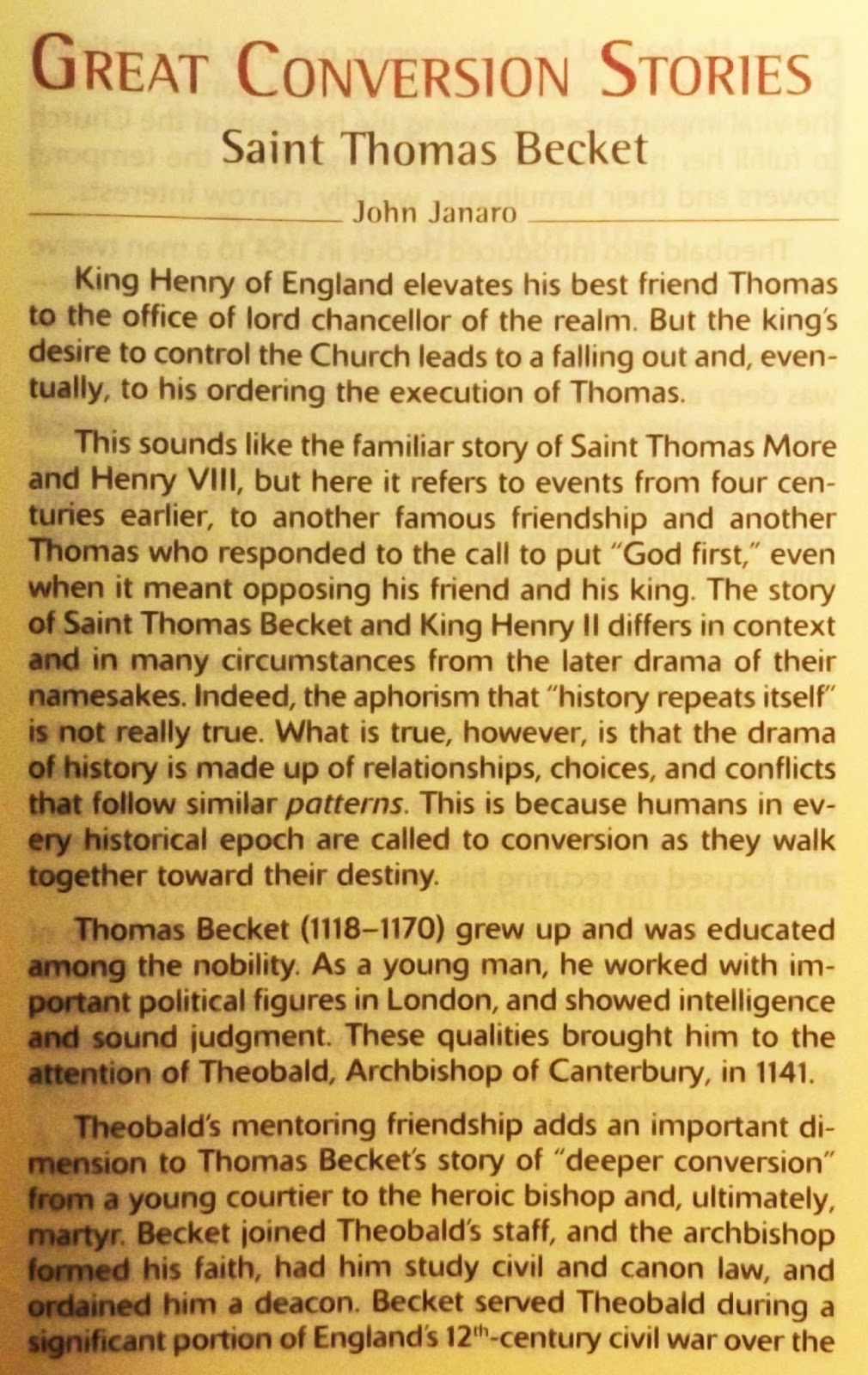 The Great Conversion Story for May 2016 focuses on the drama of a king named Henry and his best friend Thomas. I have reproduced it below. To see this column every month (and many other terrific aids to prayer and the Christian life) please subscribe today to the wonderful MAGNIFICAT magazine. Available in print or digital forms.