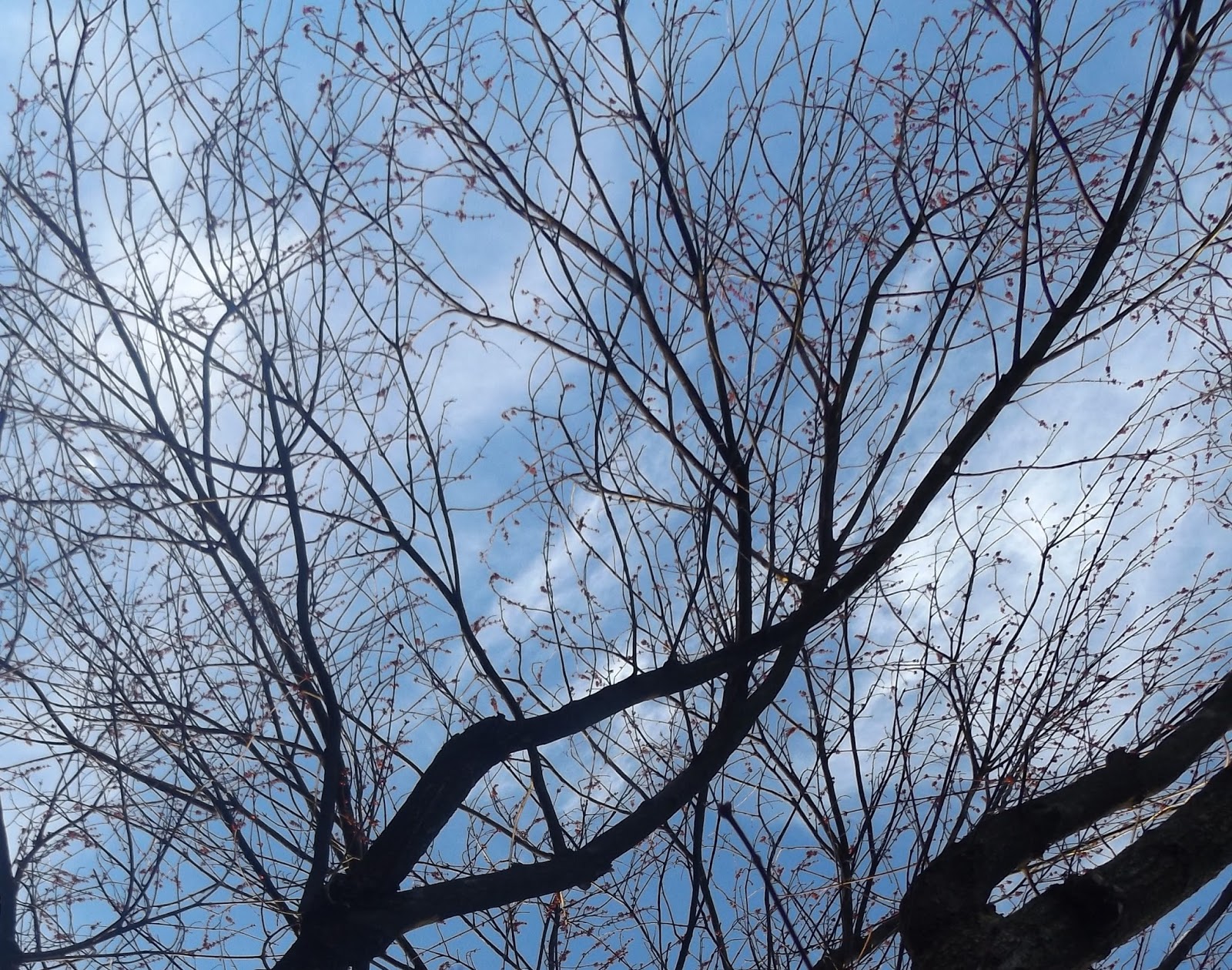 The big maple trees are still bare except for their early red tips. Hard to believe this will be a green canopy soon!