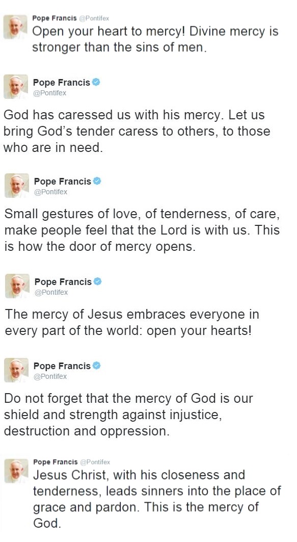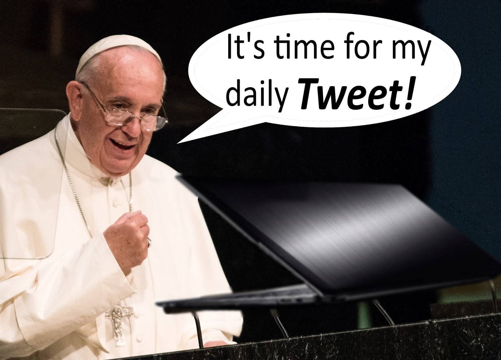 Seriously, even though the Pope has someone else do the actual posting, he's been giving us plenty to ponder recently on his Twitter account. I wonder what would happen if we took up and prayed about the theme of the daily tweet that Pope Francis sends out in seven languages (including Arabic). What if we allowed it to guide even a few moments of prayerful consideration and comparison with our own lives and priorities?