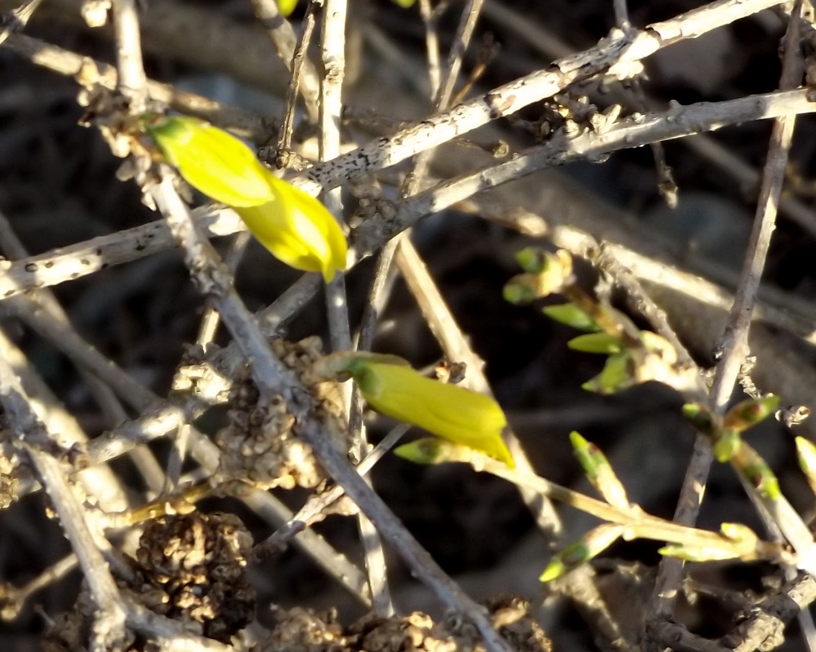The Forsythia bushes have just begun to show their first tentative yellow shoots.