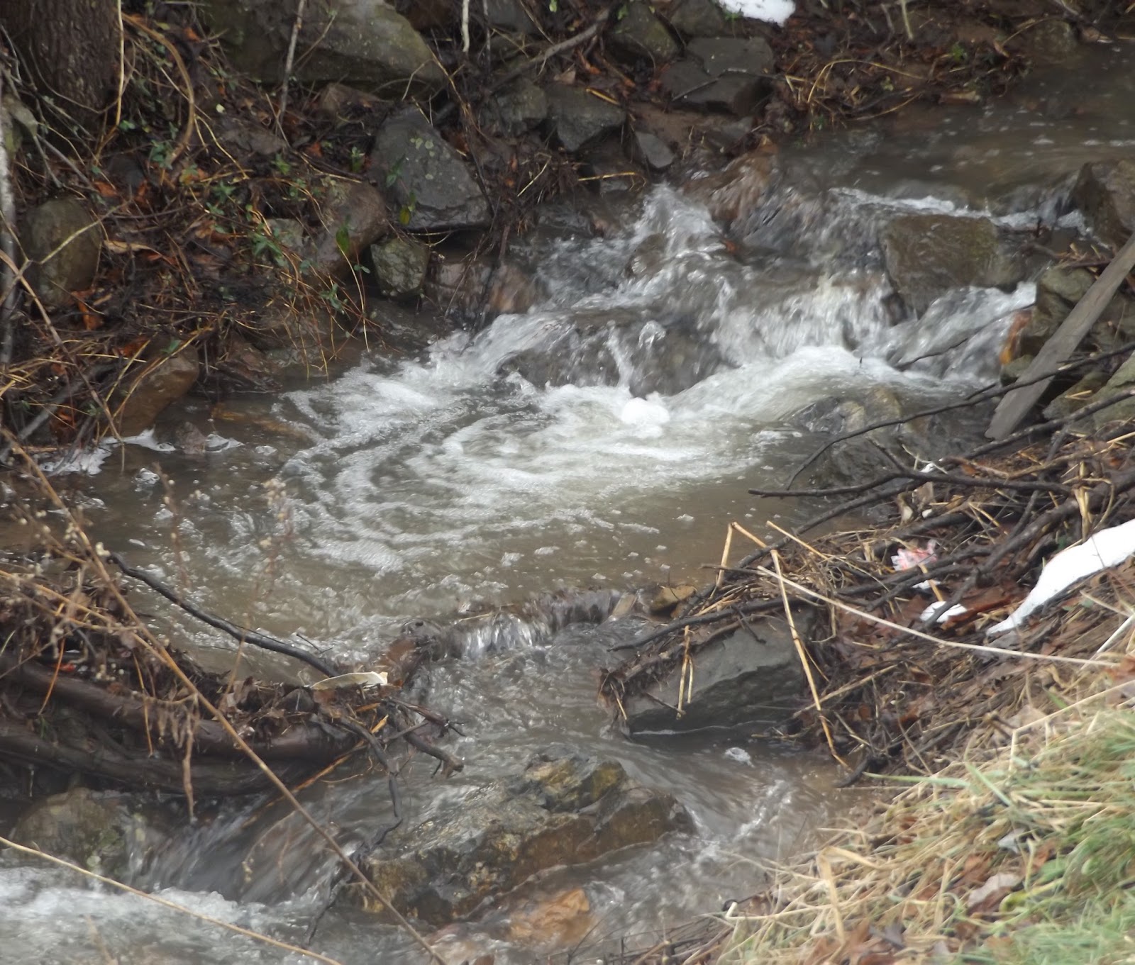 Meanwhile the melted snow has turned drainage paths into roaring streams: