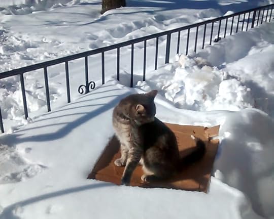 Reepicheep got to do some sunbathing.School was off today (Monday). Our roads were plowed but there was still lots of work to do in more remote locations. Temperatures grew warmer and a few clouds moved in.