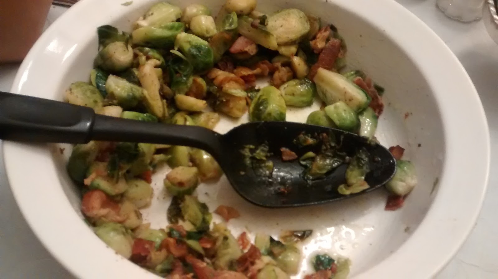 Eileen outdid herself once again with a truly fantastic meal. It's hard to pick my favorite among the foods, but the brussel sprouts with bacon were certain among the highlights: