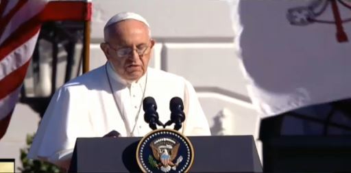 Pope Francis gives remarks in English on the White House lawn: