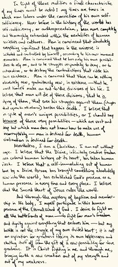 I still see the problems of human existence but my perspective has grown, and what are "my words" below have become more my life and my suffering. In strength and in weakness, I am more aware that what matters is fidelity to the Mystery of God and His opening-up of my life to my brothers and sisters, in love.