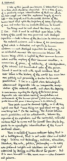 Below is the introductory "Statement" to those pages, written probably on September 5, 1990. I don't know if I had plans to experiment with a genre or whether I was hoping—being a bright young man and all that, who expected to play a big role in the future—that posterity would take interest in my observations.