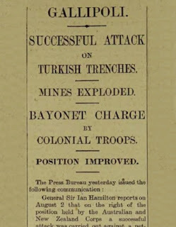 We generally associate the battle of Gallipoli with April 25, 1915. Our friends "down under" observe it as ANZAC Day (Australian and New Zealand Army Corps). The Aussies and Kiwis were heroes that day, and afterward, for their immense bravery and sacrifice in desperately trying to carry out an invasion that was not their idea.