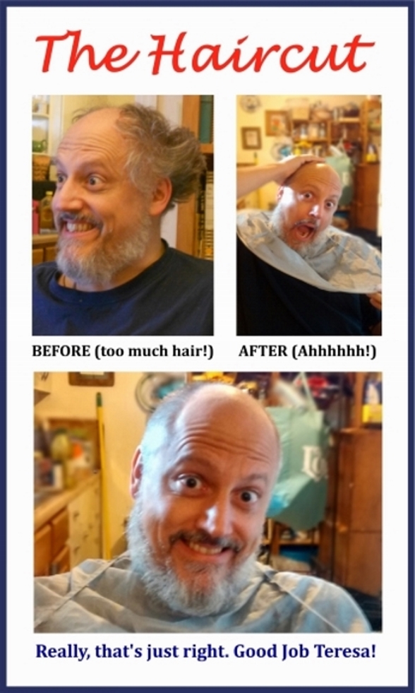 Teresa was messing with my hair and got it all sticking up in the back (see The Haircut, top left). I was grumbling about how I really needed a haircut.