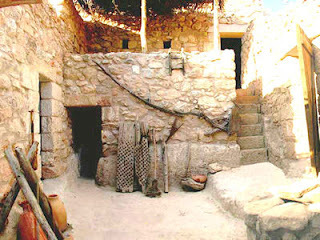 Everybody all together! (...as this reconstruction illustrates)Mary's parents, while they were still alive, were close at hand. (It's not like Joachim and Anna would have retired and moved to Florida.) Then there were aunts and uncles and all those cousins who get translated as "adelphi" ("brothers") in the Greek New Testament. Mary and Joseph lived with Jesus and his "kin" -- the whole big, affectionate, bickering, sometimes nosy extended family such as can still be found today in the cultures of the Levant.