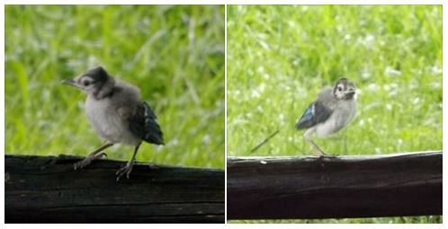 The next morning it became clear why these birds were determined to turn Reepicheep into a nervous wreck. We found a couple of little jays flitting about and scuttling along the fence, stretching their growing feathers.