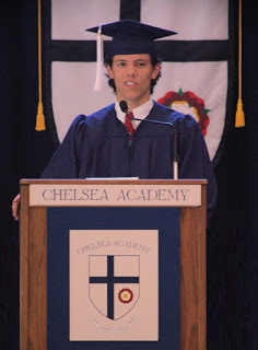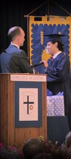 So, first of all, here is a nice picture of John Paul receiving his Salutatorian award from the headmaster of Chelsea in 2015: