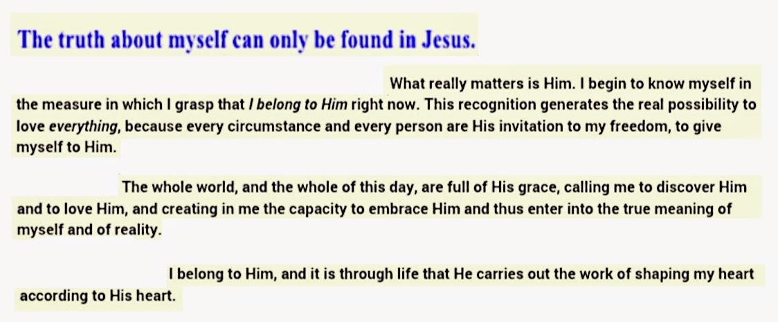 How do I live so much of my life without an awareness of Him? Why does my heart not converse more with Him? O sure, I "pray"--but it's like I'm an official making a report to my boss from time to time. Or even if I speak with Him in sugary, "personal" terms, so much of it is still a game of dodge and duck, an effort to "love" Him but still keep Him at arms length. Which, of course, is the way I interact with the human persons who are important in my life. Please don't enter the fear zone.