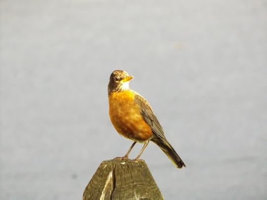Here's a vigilant, chirpy, and very busy robin. I wonder why? Hmmmm...
