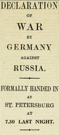 Clearly, the six paragraph article conveys some significant stress way over there in Continental Europe. There has been "agitation" in the region for the past two weeks, ever since a Serbian terrorist (possibly linked to elements of the Serbian government) assassinated Archduke Franz Ferdinand.