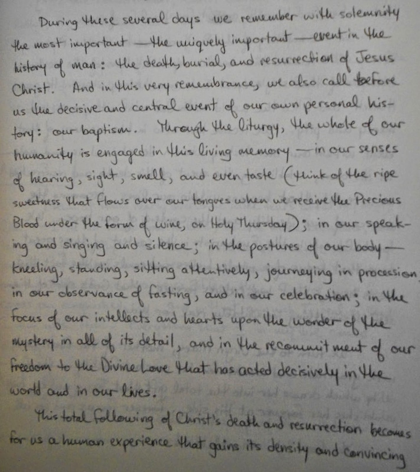 The Young John Janaro was eloquent about his experience of the Easter Triduum in the year 1991. I like what he wrote in his journal, and so I shall present it here as we journey through this night to Paschal dawn.