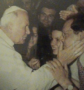 John Paul II really gave himself. He was not "going through the motions." And the most amazing thing was that he didn't hide himself in any way. It mattered to him that he was meeting us; this was a moment of relationship. We were just totally hugging him and saying "we love you" and I felt like he needed that. He too was a human person, and he received and valued the love we expressed to him. The way he responded was totally real; he said, "thank you" and he meant it.
