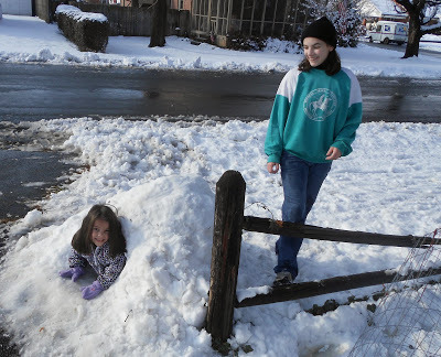 We had two snow days, which meant that everyone was home and everyone had at least some fun in the snow. There were bundled children and snowmen and hot cocoa and all that good stuff. We have a child young enough to still find the whole thing magical, and older kids who have fun helping her, and kids in between who can do fun and interesting things on their own.