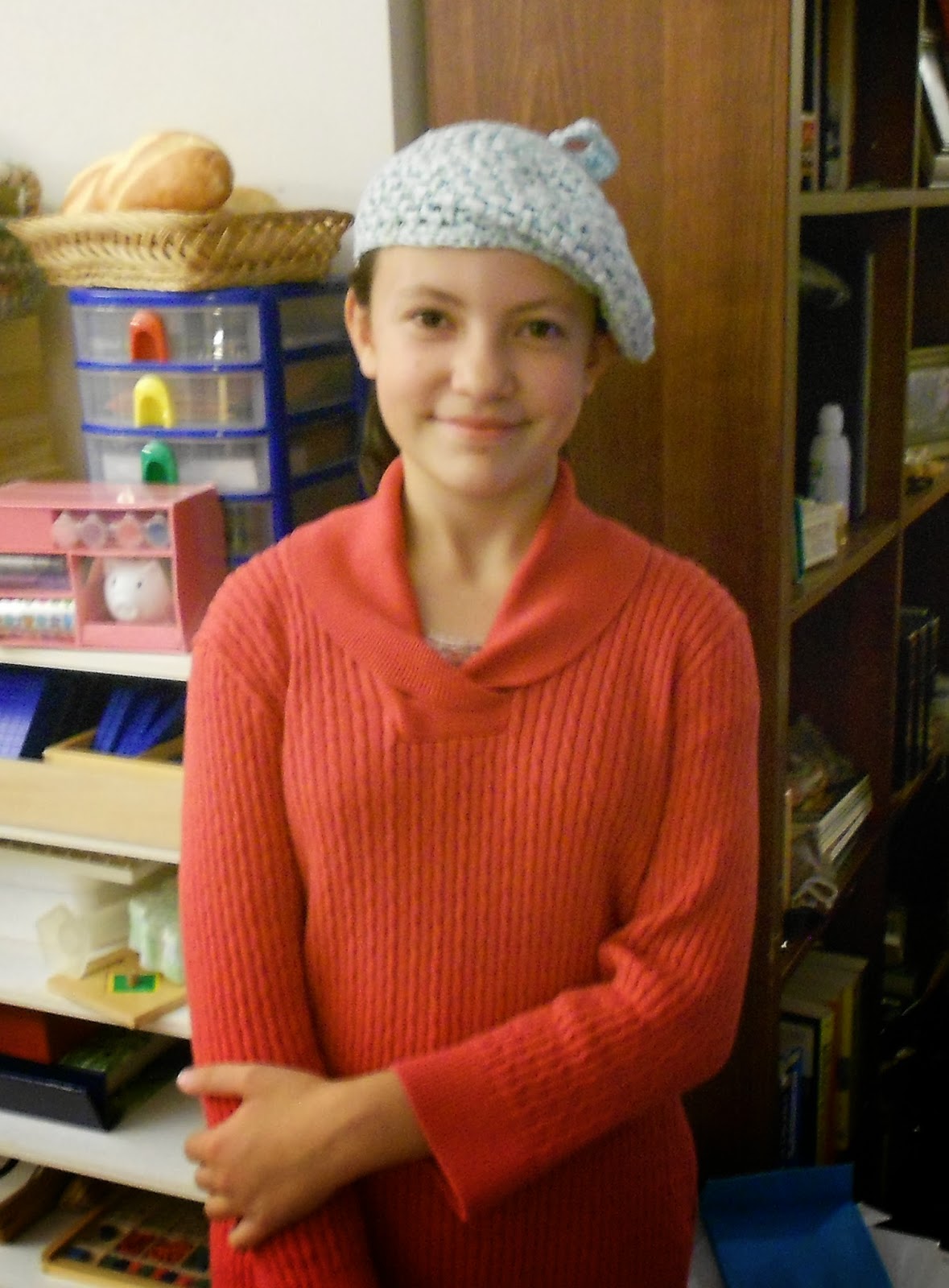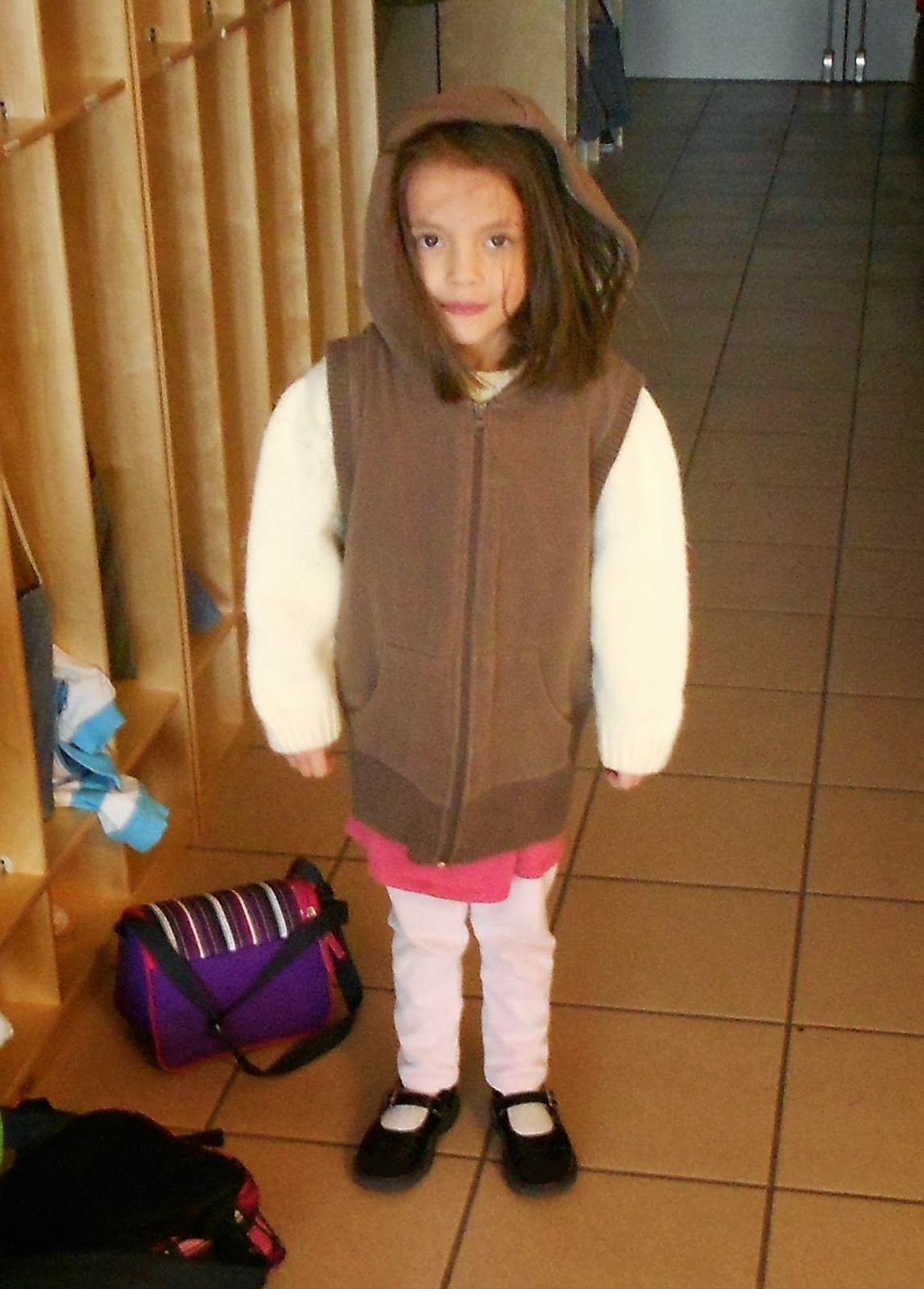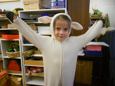 Its true that she got a very pretty haircut recently, which makes her look more mature. But gosh, she still fits into the Lamby costume that Eileen made for the kids when they were toddlers. Somewhere there's a picture of Lucia at age three practically bursting out this thing. Nobody has ever come close to wearing it at the age of seven.