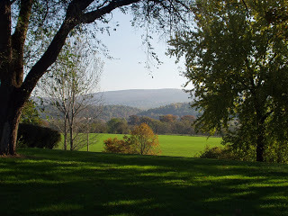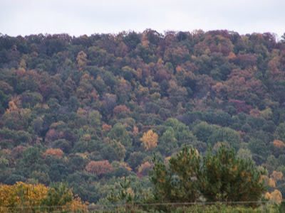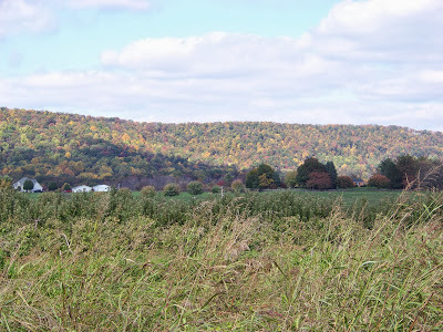 This is our stretch of the great ancient Appalachian mountain range, some of the oldest mountains in the world. They surround us in this valley; they stand over us quietly with patient faces of stone bearded with trees. At this time of year, other colors become clear in that blue horizon.