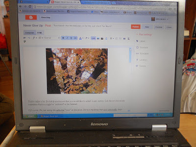 The medium lends itself to being misused in these ways. There is also easy access to information and images that can positively fracture the human personality. That's another topic. I have nothing to do with that (nor, as far as I know, do any of the other five people who actually read this blog). But I know all about how the Internet can be distracting.