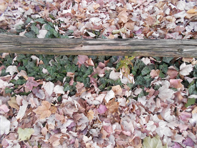 The ground is now thick with fallen leaves. Now is the time that we begin to appreciate winter greens, like the ivy in our yard. Its all the green that's left.