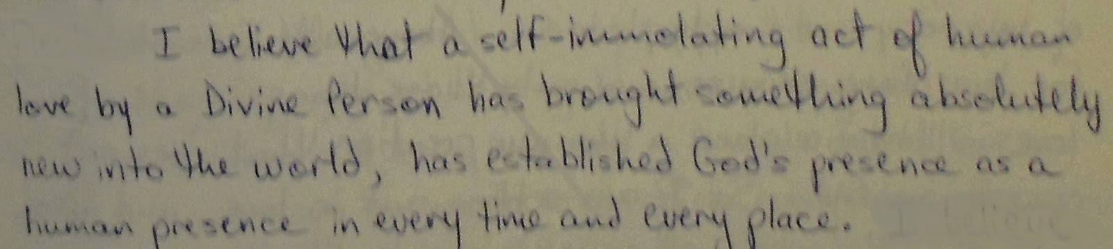 This means that JJ today -- while still fully acknowledging the divisions and the death that he wrote about in the first paragraph -- is less afraid of them. He sees more clearly (in spite of many hesitations) that death is not the final word, that evil -- in spite of its show of power -- has been defeated and uprooted forever, that however things may seem, the truth of reality is that everything is grace.