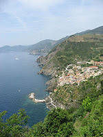 [Walking with our friends], we traveled to the lookout tower on a jutting cliff near Vergognia. After a fairly brief but strenuous hike, we arrived at the clearing at the base of the tower.