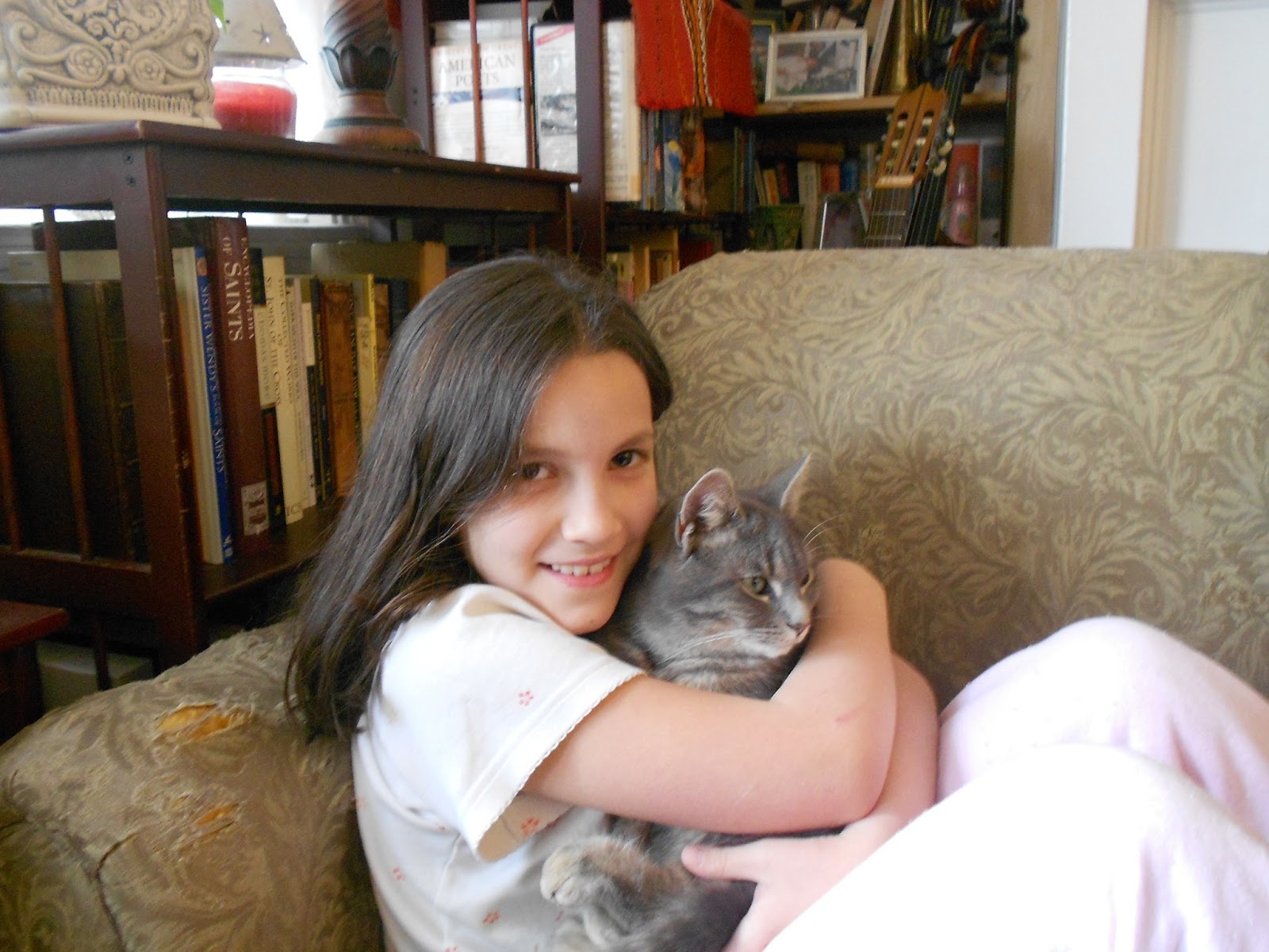 There's Teresa snuggling Alex, our "outdoor cat"! By the way, Alex is now a