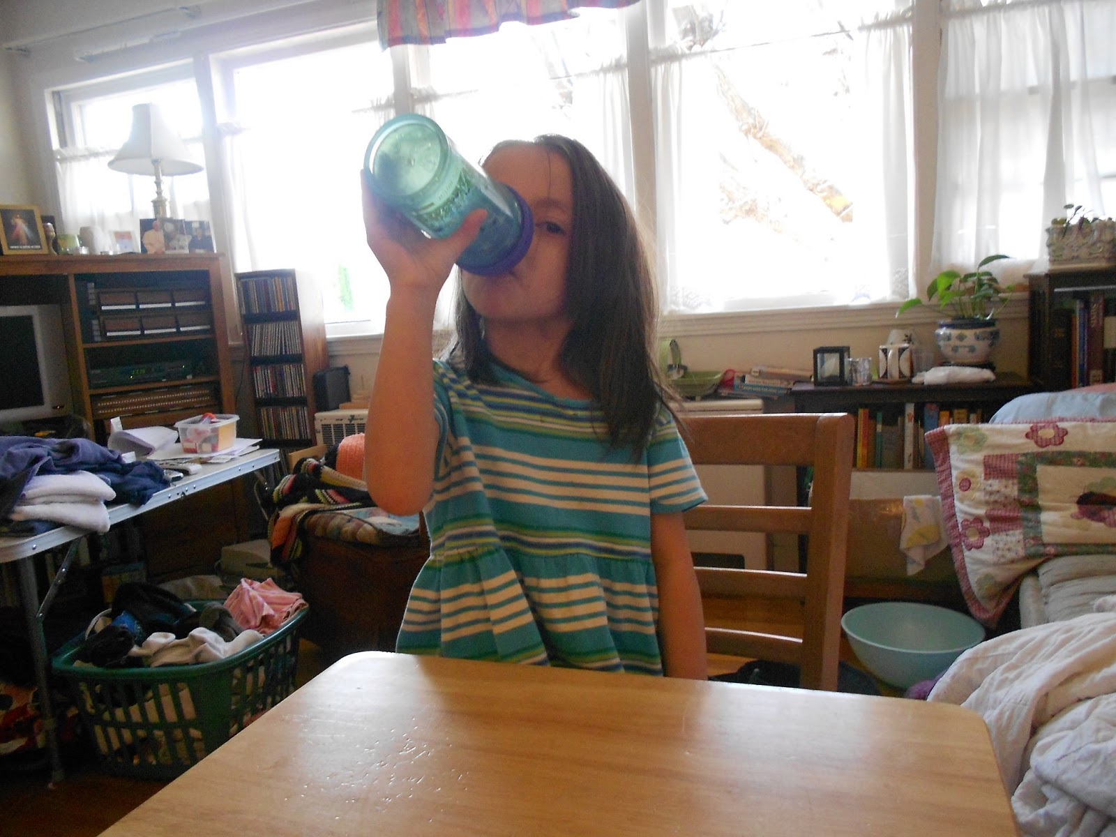 It was just a pitiful sight! She started chugging first thing in the morning. 100 proof H2O. Dangerous stuff. It should be regulated. People drown in it all the time. Although not usually from a sippy cup.