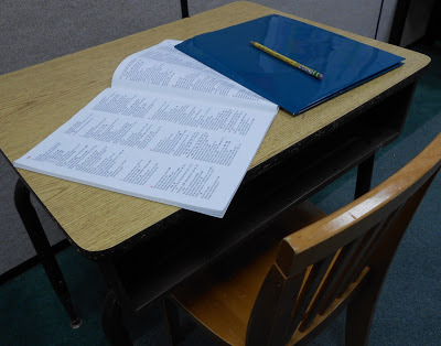 "Gosh," I thought... but before my mind could drift into a reflection on how constraining it must be for a kid to be stuck to a desk, I realized that I went to "Desk School" for twelve years! "Oh, hahaha, you mean like a regular school."