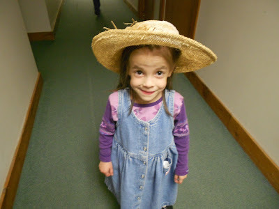 Back to 2013: Here's the little Missy in the school hallway. With a straw hat from somewhere.
