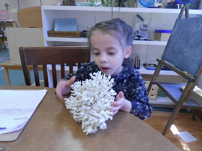 At the Montessori Center, Jojo examines some coral