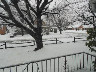 The snow piled up to more than a foot, I'm guessing, when something strange began to happen. It continued to snow, but instead of getting higher, the stuff on the ground got thicker. It got goopier and goopier, but it was still snow. The temperature was above freezing and I think some of it was melting even as it fell. You could have scooped it up in a cup and you would have had...one of those frozen drinks that you get at fast food places, what are they called? I know that on Veggietales they call them "Slushies," and I can't think of a better word right now.