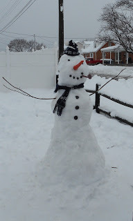 and flavor, and... Slushies!Meanwhile, snow is falling off the trees. Melting. The humongous, dangerous storm has turned out to be (at least in our area) another dud. Which is fine with me. As the sun sets, the clouds begin to part. I think our snowman is going to have a short life.