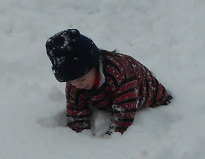 still can. Temperature's rising.So we hunkered down and watched the snow and the wind. Well, I hunkered down. The kids, of course, went out to play. I only made a brief visit to check a few things out and take some pictures. It was a wet, wet snow. Good snowman snow. The kids built a lovely snowman.