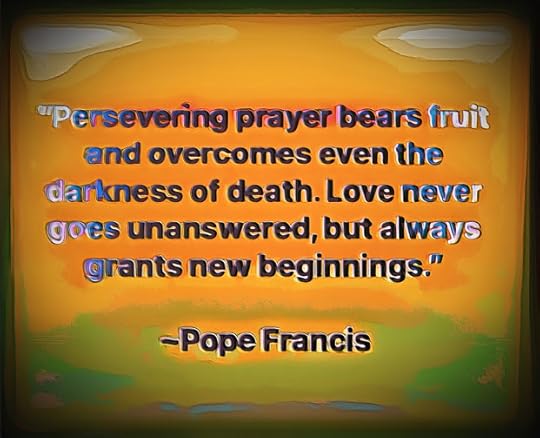 Trust, trust, trust, in the greatest darkness, beyond the most awful of tragedies, beyond the blackest holes of incomprehensibility that open in front of us, beyond all we accomplish in toil and struggle, and all our sins, failures, incompetence, weakness, all the pain that never goes away… Trust, hold onto Jesus, pray and never give up. The Holy Father says, “persevering prayer bears fruit and overcomes even the darkness of death. Love never goes unanswered, but always grants new beginnings.”