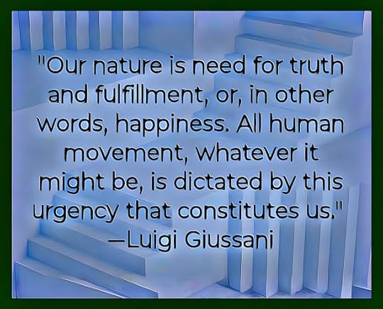 "Our nature is need for truth and fulfillment, or, in other words, happiness. All human movement, whatever it might be, is dictated by this urgency that constitutes us" (Luigi Giussani).