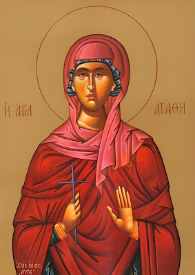 You were a fragrant flower of virginity and an undefiled bride of the Lifegiver; you desired the Source of all good and excelled in martyrdom. O glorious Agatha, intercede by your holy prayers for those who lovingly honor your contest.