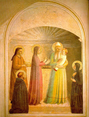 Today we rejoice with Simeon and Anna, and look forward through his prophecy, and with Mary, to the Cross whose the path we will soon begin to travel. (Picture: Fra Giovanni da Fiesole [a.k.a. Beato Angelico] San Marco, Florence).