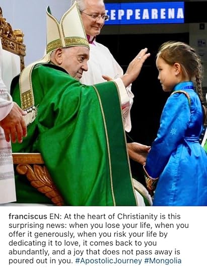 It also happens to be the case that Mongolia today shares a border of some 2000 miles with the north of the Peoples Republic of China. The possible significance of this border in the playing-out of events in the 21st century and beyond is impossible to determine today. But Pope Francis walked through the Mongolian capital of Ulaanbaatar he came closer than any of his predecessors to the soil of the historically great, currently enigmatic “world” that is China.