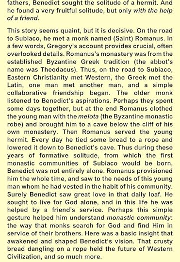 Saint Benedict’s “flight to the desert” was a radical response to a grace which he hardly understood at the beginning, but which began to be realized by his fidelity to the prompting of the Holy Spirit and the guidance from brothers in Christ to whom he was entrusted along the way.